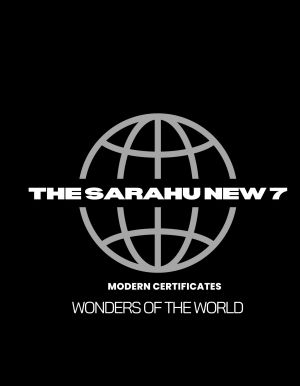 Sarahu new 7 modern certificates wonders of the world have done the 1st, 2nd, 3rd, 4th 5th, 6th and 7th Human Wonders of the world from Sarahu World Records and the remaining 22 Organizations with 300 manpower and with another audience opinions and recommendations. And doing it. Here's how did and worked on the 7 Modern certificates World Wonders of Sarahu. Here are some of the most important and pertinent documents; and the combination of all these records made it the new 1st to 7th modern certificates Wonder popular in the World.